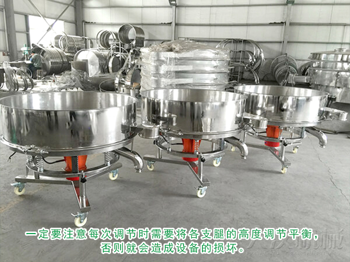 由于大多數(shù)客戶在購買高頻振動(dòng)篩時(shí),都要求將支架設(shè)計(jì)成可調(diào)節(jié)高度,因此客戶在使用現(xiàn)場調(diào)節(jié)支架高度時(shí)一定要注意每次調(diào)節(jié)時(shí)需要將各支腿的高度調(diào)節(jié)平衡,否則就會造成設(shè)備的損壞。