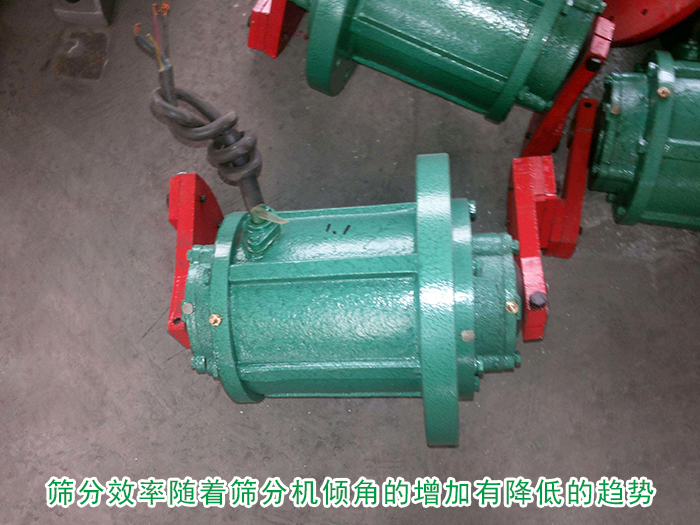 當(dāng)振動電機(jī)的工作轉(zhuǎn)速固定在500r/min時,在相對增高線速度的錘頭撞擊下,使得破碎并使之均勻化,排料粒度相對小一些,較有利于下道篩分工序。篩分機(jī)在傾角較小的工況下,篩分效率都較高。但隨著篩機(jī)轉(zhuǎn)速的增高,傾角的增大,部分物料在篩機(jī)體內(nèi)開始做離心運(yùn)動,反而不利于篩分作業(yè),篩分效率迅速降低。