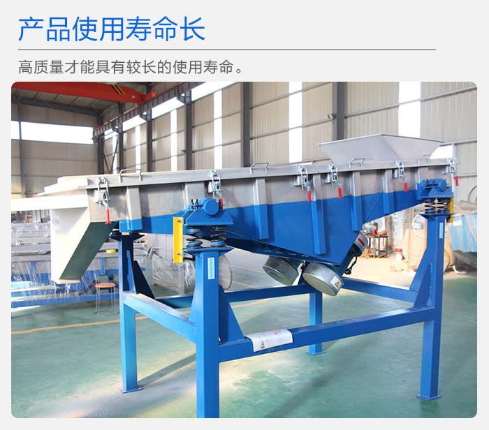 顆粒振動(dòng)篩的使用壽命只有達(dá)到了一定的,質(zhì)量度才能夠達(dá)到高的使用壽命。所以顆粒振動(dòng)篩廠家對(duì)于產(chǎn)品的選材以及做工是非常重要的,大漢廠家對(duì)于篩網(wǎng)的制造為滿焊的制造效果,其能夠保證篩網(wǎng)的牢固,以及提高篩網(wǎng)的使用壽命。