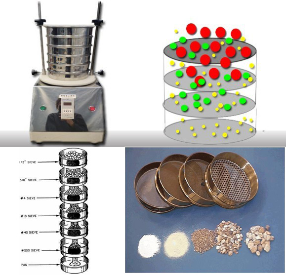 電磁試驗(yàn)篩由底座、電磁發(fā)生器、篩盤(pán)及標(biāo)準(zhǔn)篩組成。采用電磁作為驅(qū)動(dòng)力,使產(chǎn)品均一分布于整個(gè)篩網(wǎng),并做三維振蕩(具有上下振動(dòng)、前后往復(fù)運(yùn)動(dòng)、左右擺動(dòng)三種振動(dòng)方式),這種特殊的振蕩方式有效地防止近篩顆粒堵塞篩孔,使得篩下顆粒得以有效通過(guò),根據(jù)粒度分級(jí)的需要用戶(hù)可以選用不同目數(shù)的標(biāo)準(zhǔn)篩,使小于篩網(wǎng)??的物料顆粒篩入下層篩框內(nèi),以達(dá)到分離、分級(jí)、確定粒徑的目的。