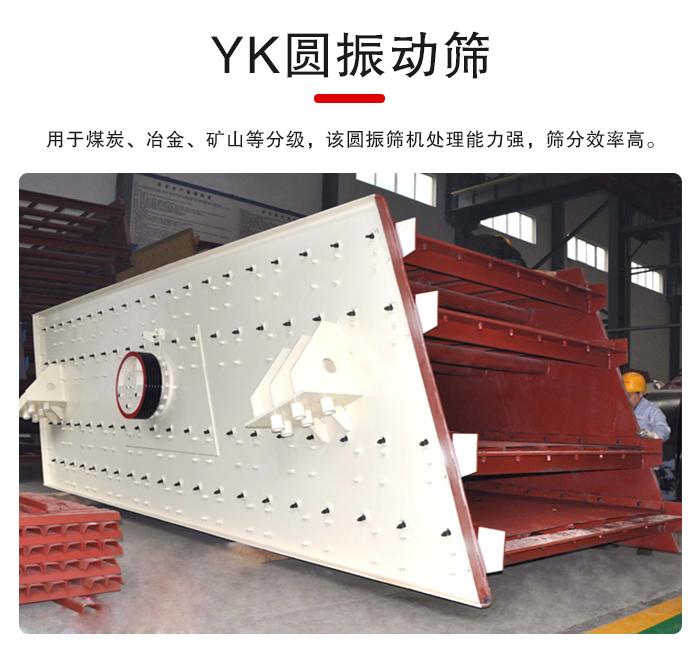 YK圓振動篩做圓形運(yùn)動,是一種多層數(shù),高產(chǎn)量的礦用振動篩。