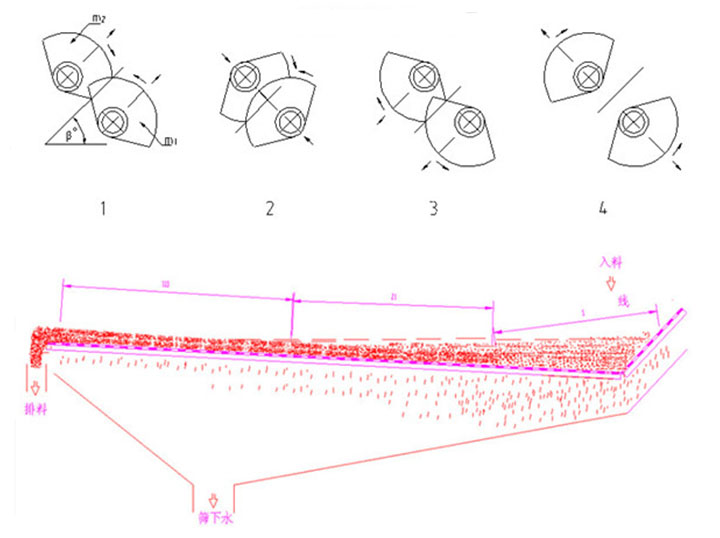 1,為了適應(yīng)不同尾礦性質(zhì)差別,本篩振幅可調(diào),方法是調(diào)整主副偏心塊夾角,從而滿(mǎn)足不同性質(zhì)尾礦的脫水效果。