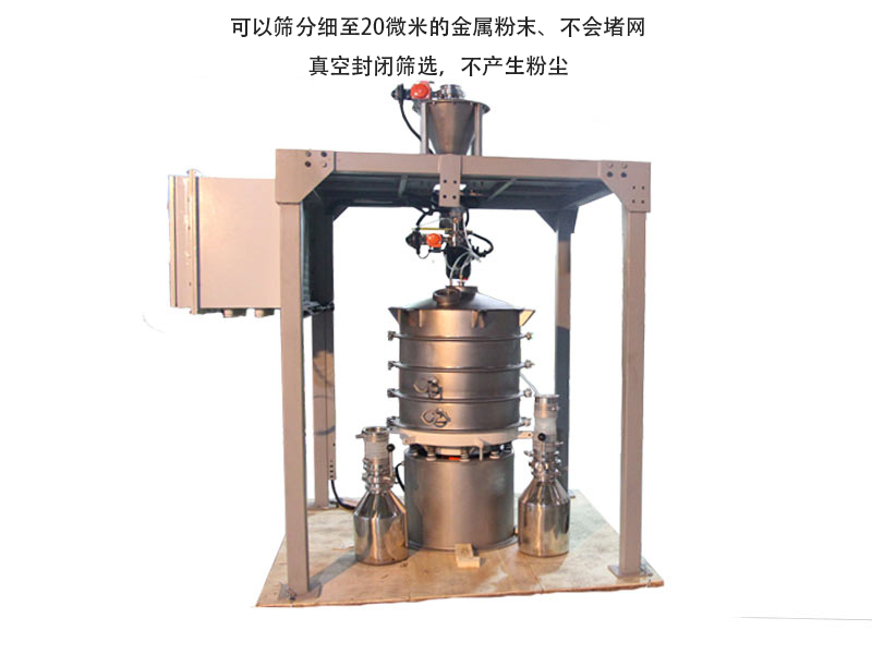 特點:與超聲波系統(tǒng)相結合,可以篩分20微米的金屬粉末,不堵網,真空封閉篩選,不產生粉塵